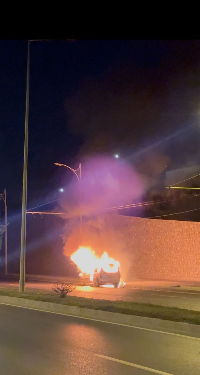 Yangın kısa sürede tüm aracı sardı. İtfaiye ekipleri olay yerine henüz ulaşmadan araç tamamen küle döndü.