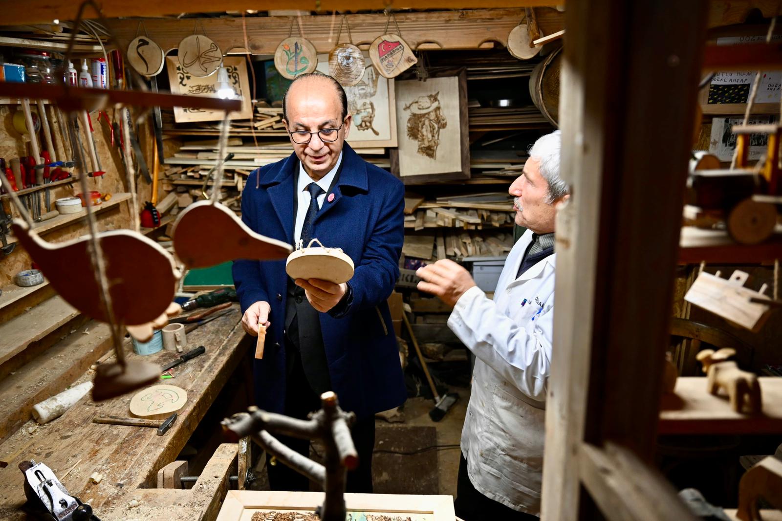 Sanatkârların atölyelerini tek tek gezen Başkan Geçit, yapılan çalışmaları yakından inceleyerek ustalardan bilgi aldı. Geleneksel üretim süreçlerine büyük ilgi gösteren Başkan Geçit, ahşap atölyesinde tahtaya çivi çakarak el emeğinin ve zanaatkârlığın ne denli kıymetli olduğunu sembolik bir hareketle ortaya koydu.