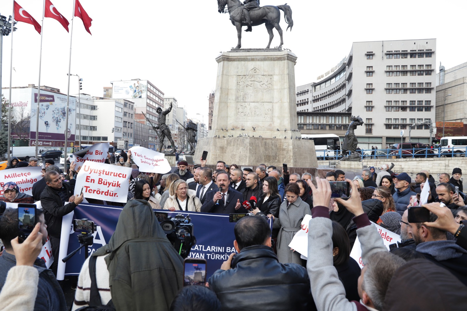 Anahtar Parti Genel Başkanı Yavuz Ağıralioğlu, Anahtar Parti Genel Merkez Kadın Kolları Başkanlığı’nın Ankara Ulus Meydanı’nda düzenlediği uyuşturucu ve bağımlılıkla mücadele programına katıldı. Anahtar Parti Genel Merkez Kadın Kolları Başkanlığı, Anahtar Parti Ankara İl Başkanlığı, Anahtar Parti Genel Başkan Yardımcıları ile bağımlı evlatları olan ailelerin de yer aldığı basın açıklamasına katılan Yavuz Ağıralioğlu, özetle şunları söyledi: