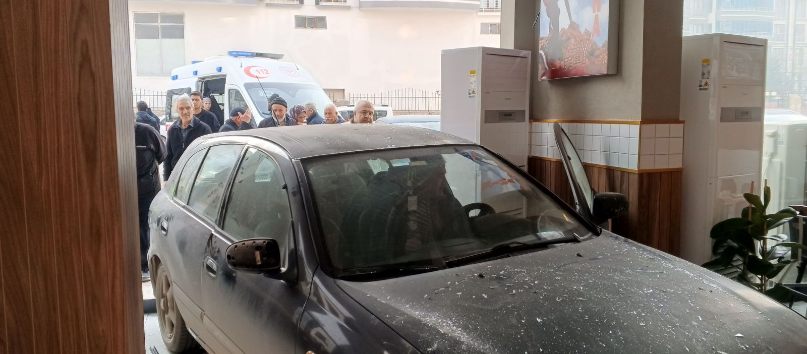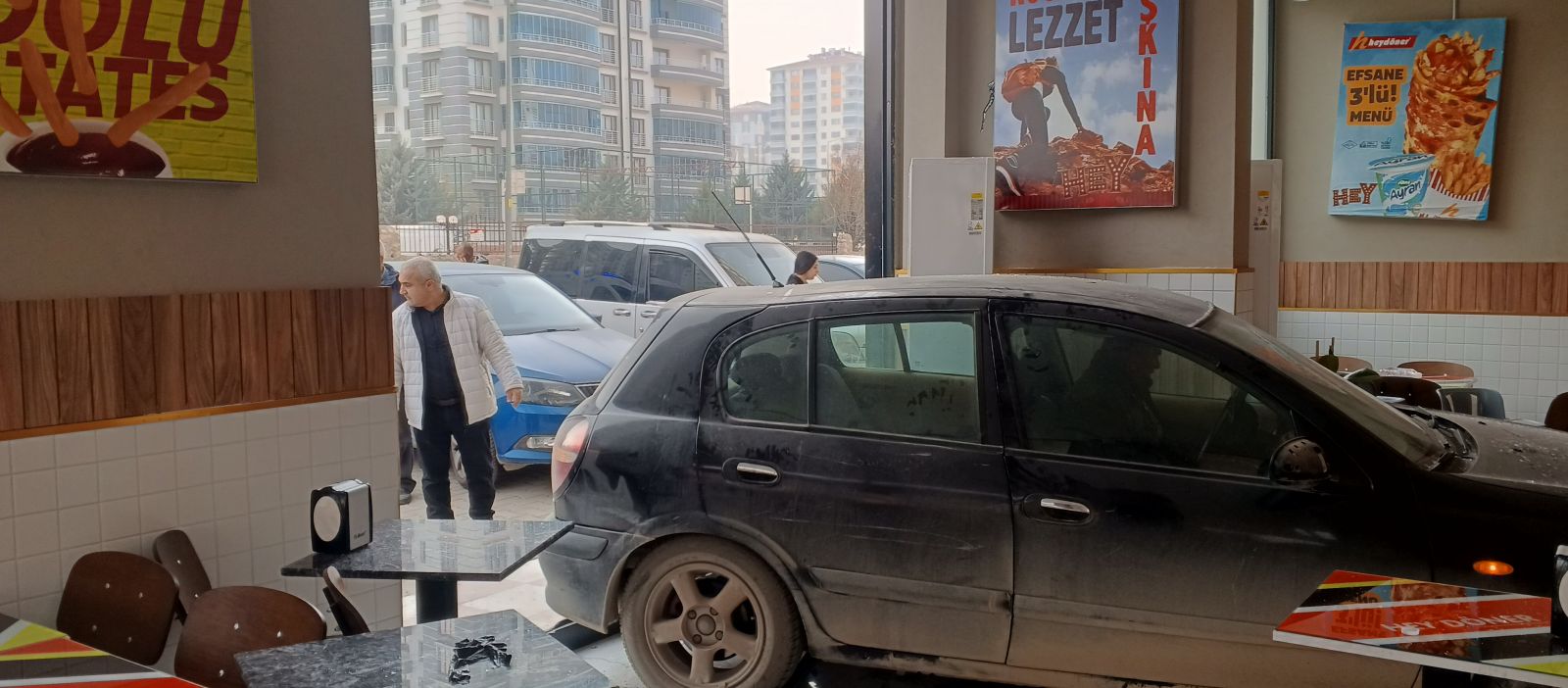 Edinilen bilgilere göre, seyir halindeki otomobil, sürücüsünün direksiyon kontrolünü kaybetmesi sonucu yol kenarında bulunan ve kısa süre önce hizmete açılan Hey Döner isimli iş yerine girdi.