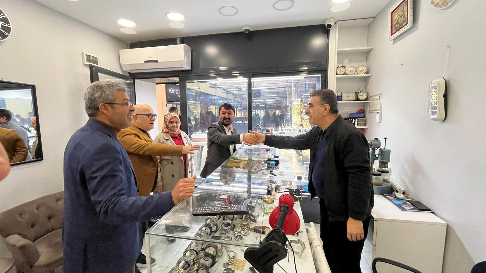 Esnafın sorunlarını yerinde dinlemeyi amaçlayan ziyarete parti yöneticileri ve gençlik teşkilatı yoğun ilgi gösterdi.