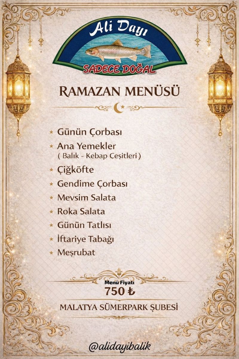 Ali Dayı Alabalık ve Et Restaurant ailesi, Ramazan ayının tüm vatandaşlara sağlık, huzur ve bereket getirmesini dileyerek, sevdikleriyle birlikte keyifli iftar sofralarında buluşmak isteyen herkesi şubelerine davet ediyor.