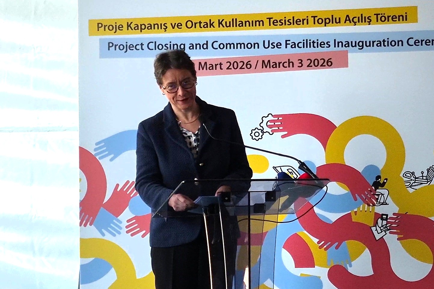 UNDP Türkiye Mukim Temsilcisi Monica Merino ise Doğanşehir’i çok beğendiğini ve ilçe sakinlerinin sıcak karşılamasından duyduğu memnuniyeti dile getirdi. Merino, “Doğanşehir’i çok beğeniyorum ve kar manzarası ile bizi karşıladınız. Fransa tarafından finanse edilen deprem sonrası müdahale programı kapsamında ortak kullanım tesisimizin açılışını gerçekleştirmek için bir araya geldik. Bu buluşma, bölge için dayanıklılık, toparlanma ve yeniden yeşeren umutlarımızın ortak bir simgesidir. 3 yıl önce, 2023’te yaşanan yıkıcı depremlerden etkilenenler arasında küçük esnaf, kadın girişimcilerimiz ve engelli bireyler yer aldı. Sizlerin cesareti ve azmi, toparlanma çabalarımızı somut sonuçlara ve başarılara dönüştürdü. Fransa’nın cömert desteğiyle programı hayata geçirdik. 1200’ün üzerinde başvuru aldık ve 208 küçük işletmeye destek sağladık. Bu işletmelerin 196’sı kadınlar tarafından yönetilmekte. 12 işletme ise engelli bireylere ait veya engelli bireyleri istihdam eden işletmelerden oluşuyor” ifadelerini kullandı.