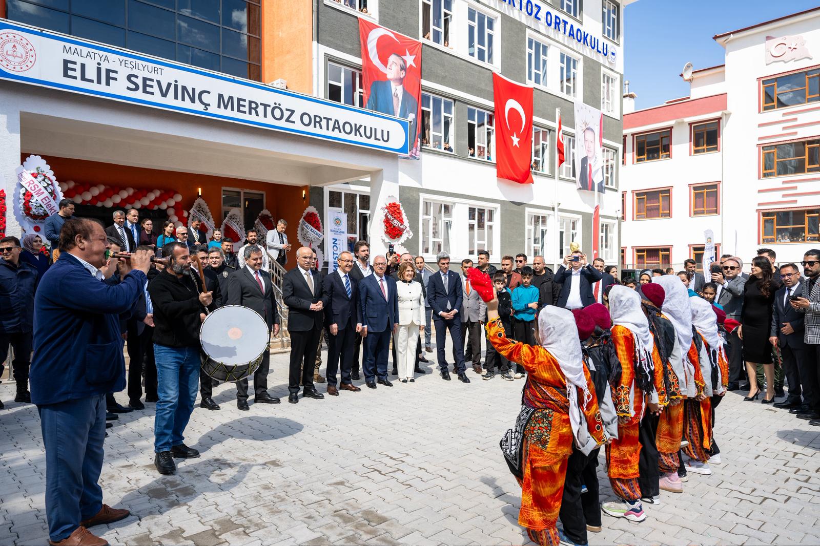 Eski Sümer Ortaokulu’nun yerine yapılan Elif Sevinç Mertöz Ortaokulu'nun açılış töreni, halk oyunları gösterisiyle başladı.