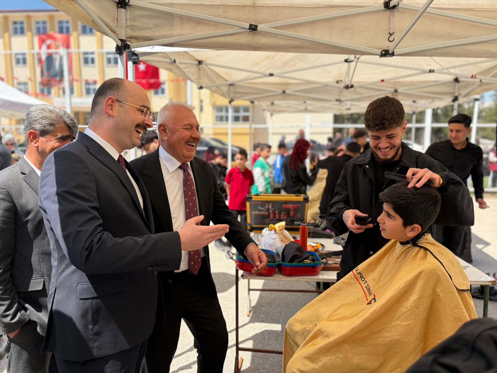 23 Nisan resmi törenlerinin ardından Şehit Serdal Toprak Anadolu Lisesi bahçesinde kurulan geçici stantlarda gerçekleştirilen etkinlikte, Malatya’nın ödüllü kuaförü Ramiz Toplu ve ekibi maharetlerini sergiledi. Gün boyu süren organizasyonda toplam 65 çocuk, profesyonel ellerde ücretsiz olarak tıraş edildi.