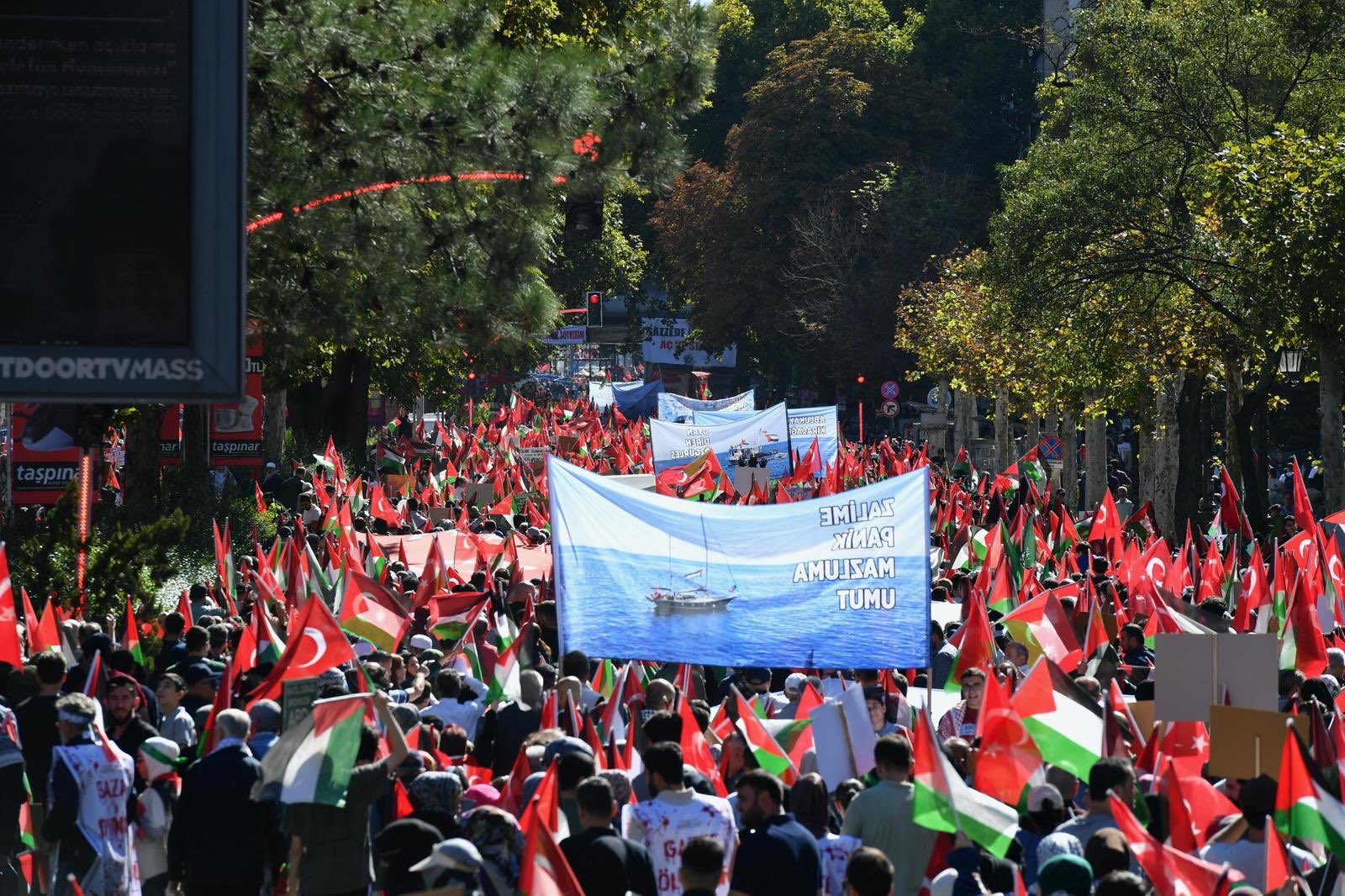 Ellerinde Filistin bayrakları ve “Gazze yalnız değildir” yazılı pankartlarla toplanan grup, yaşanan katliamlara dikkat çekerek dünya kamuoyuna sessiz kalmama çağrısı yaptı.