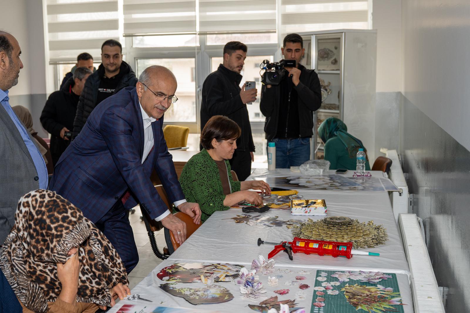 Başkan Er, külliye içerisinde bulunan Kültür ve Sanat Atölyelerini de ziyaret ederek, çalışmalar hakkında bilgi aldı.