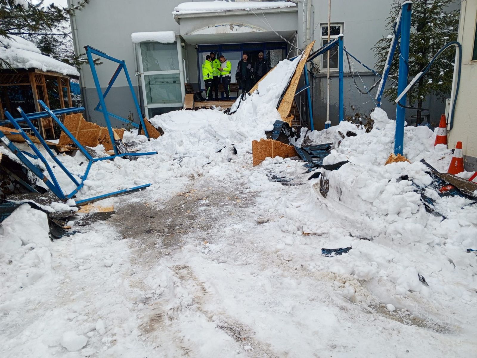 Malatya’nın Doğanşehir ilçesinde etkili olan yoğun kar yağışı, kamu hizmet binalarında maddi hasara yol açtı. Doğanşehir Sürgü Bölge Trafik Denetleme İstasyon Amirliği hizmet binası önünde bulunan sundurma, kar yükünün artması sonucu taşıyıcı kapasitesini aşarak çöktü.